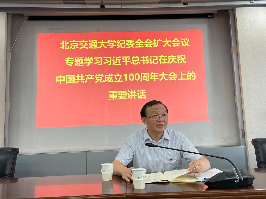 2021年7月6日上午,校纪委在思源楼712会议室召开纪委全会(扩大)会议,专题学习习近平总书记在庆祝中国共产党成立100周年大会上的重要讲话精神。会议由党委副书记、纪委书记郭海主持。