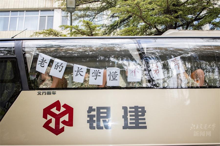 2021年7月3日上午9:00,我校2020级学生军训团出征欢送仪式在主区体育馆西侧顺利举行。上午9:30,满载3500余名参训师生的71辆大巴车缓缓从交大西门驶出,开赴昌平学生军训基地,为期两周的集中军训生活正式拉开帷幕。2019级学生军训团也于7月4日上午出发,前往昌平学生军训基地开展集中军事训练。在未来的军训过程中,交大学子将在磨练中顽强意志,在拼搏中强健体魄,共同谱画出一幅壮阔的军旅画卷。