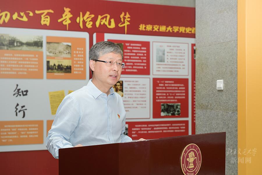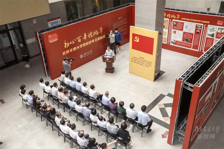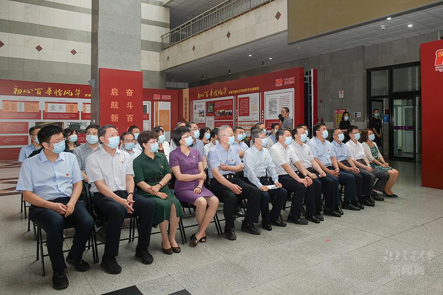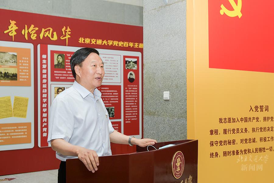 在喜迎中国共产党建党100周年之际,2021年6月29日,“初心百年恰风华——北京交通大学党史百年主题展览”在思源楼大厅开展。校党委创新学习形式,把中心组党史学习教育第四次专题学习搬到展览现场,全体中心组成员聆听辅导报告,重温入党誓词,参观主题展览,集体上了一堂立体生动的党史学习课、校史教育课。党委书记、校党史学习教育领导小组组长黄泰岩主持活动并讲话。党委副书记、校长、校党史学习教育领导小组副组长王稼琼出席活动。党史学习教育宣讲团成员、马克思主义学院韩振峰教授作学习辅导。