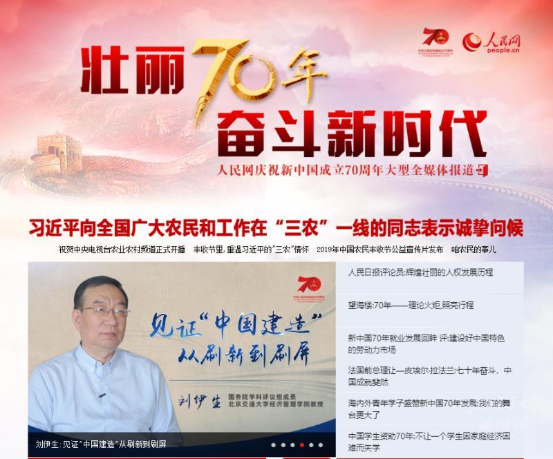 9月23日,人民网以《刘伊生:见证“中国建造”从刷新到刷屏”》为题,在首页推出国务院学科评议组成员、我校经管学院教授刘伊生接受《奋斗中国人》栏目专访的视频与文字内容。报道链接为:http://www.people.com.cn/32306/429460/index.html。